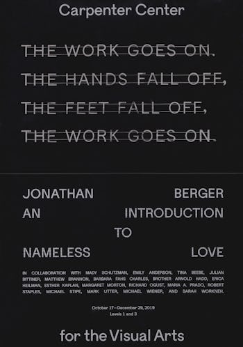 Jonathan Berger: An Introduction to Nameless Love, postcard, Carpenter Center for the Visual Arts, Harvard University, 2019